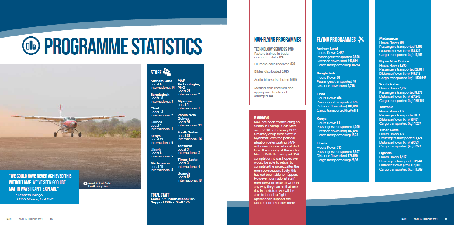 We want you to know that there are other opportunities to continue giving through MAF or through many other wonderful organizations.