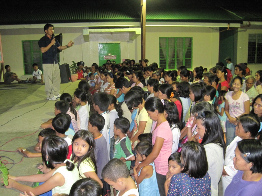 Last Friday night Todd was privileged to go with a team to an area several hours south of Manila, to assist a couple from Michigan who had come to the Philippine on a work and witness team from the Eastern Michigan District (Church of the Nazarene) and stayed a couple extra weeks.   The wife is a Filapina (born in the Philippines).  They had a vision to stay to help the people of her home community with food,  the Jesus Film and discipleship follow-up.  While visiting with them, and hearing their story about how the trip came together and how they felt impressed upon to show the Jesus Film when they came, even though they had heard that it had been shown in that area before with very little response, I could sense that God had a plan.