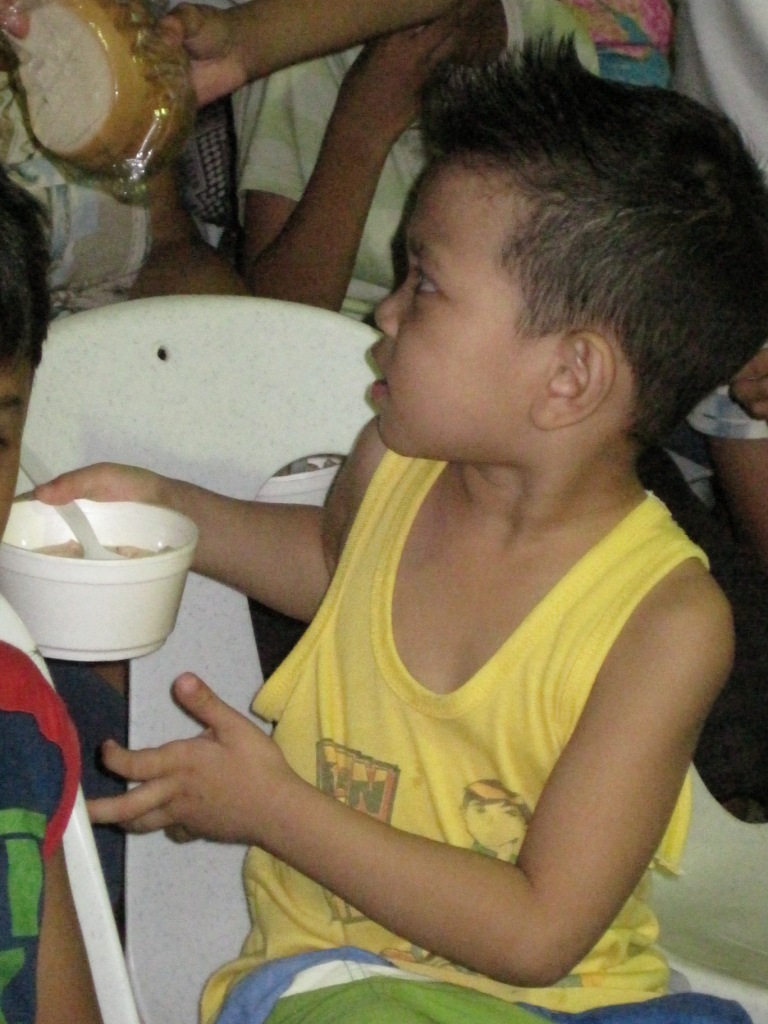 I was able to get to know one of the volunteer boys as we visited throughout the hours we were packing.  He lives in the Barangay (smallest administrative district of a town, similar to a suburb or inner city neighborhood)  next to the Seminary.  I recognized him as being in the worship team at the dedication of the community center expansion and health clinic / pharmacy that we attended a few weeks before.  He was telling me that they had installed railings along the paths by the creek to keep from falling into the rushing water.  I was very happy to hear that.